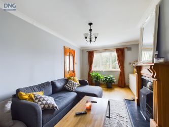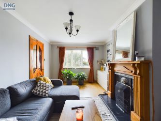Sitting Room 5.3 x 3.3. Laminate flooring, TV point, solid fuel open fire with feature surround