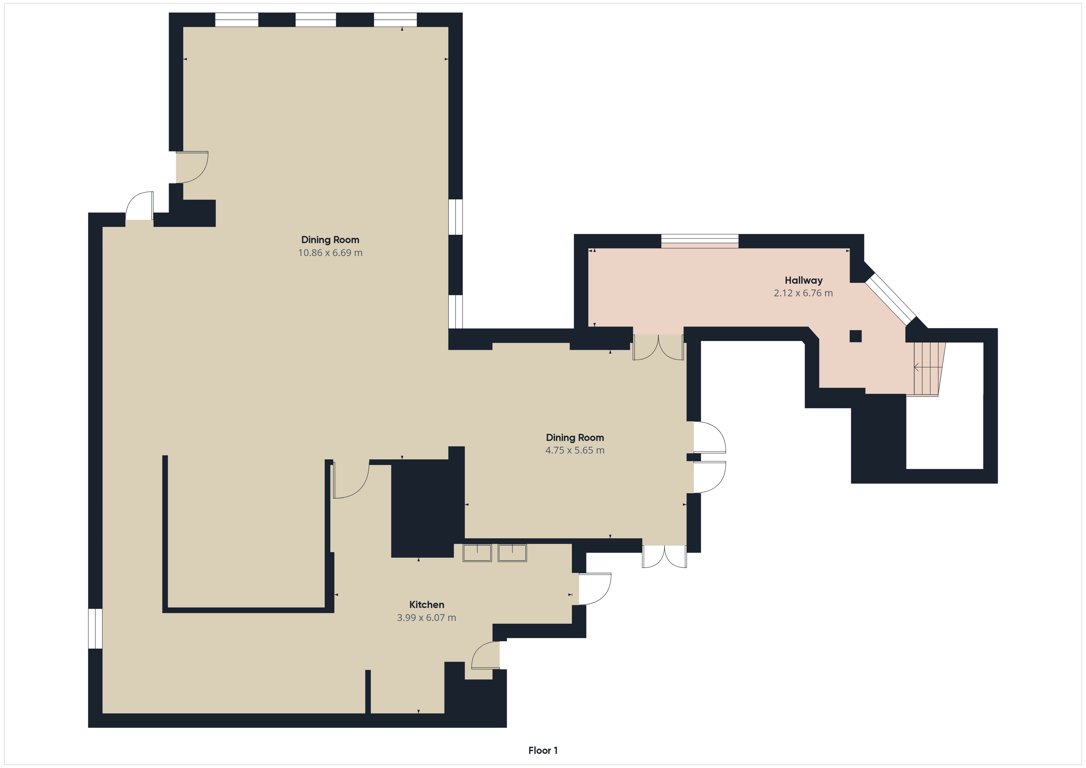 The first floor comprises of the main function room for 100 seated guests that includes a fully equipped private bar and 2nd large commercial kitchen.